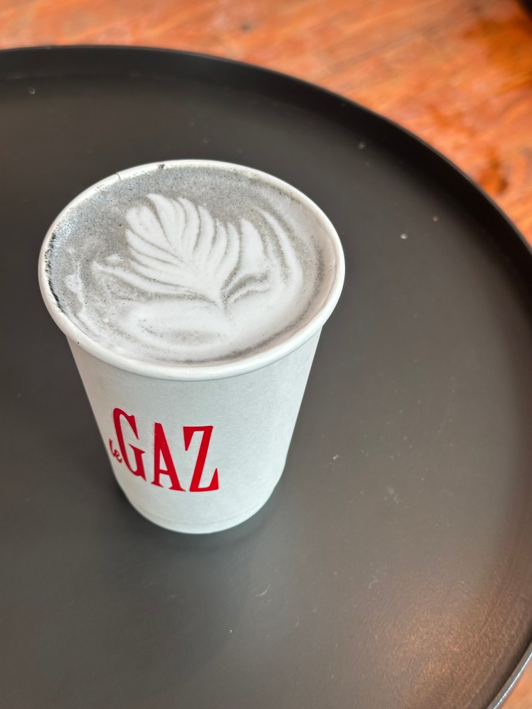 The first Cafe Collect is Le Gaz in LES! It is attached to the clothing store Fugazi, a streetwear brand. And I collected their black sesame latte.